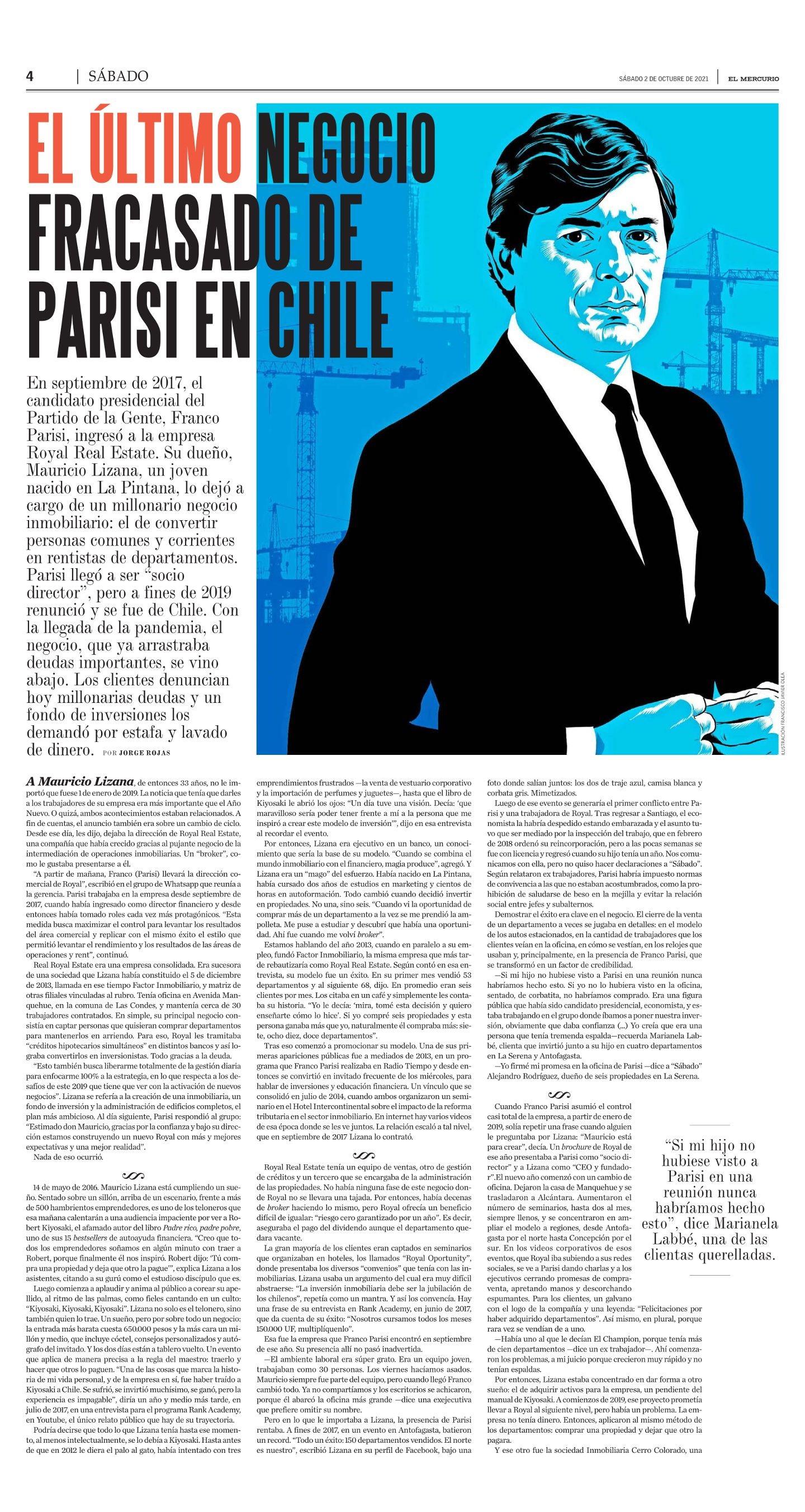 [4] En octubre pasado, el periodista Jorge Rojas publicó un completo reportaje sobre el negocio inmobiliario de Parisi en la Revista Sábado.